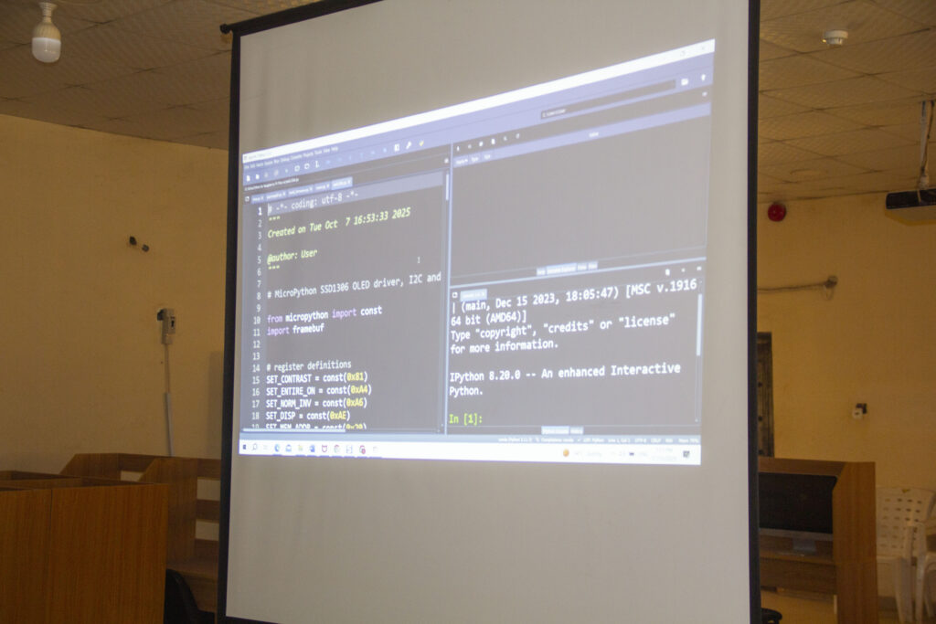 Over the course of the five days, participants will be trained in Python fundamentals, object-oriented programming, intelligent system development, and robotics control operations. Day one featured introductory Python concepts using Anaconda and Spyder, covering variables, data types, loops, functions, and basic programming structures. Participants also received a resource material titled “MicroPython Made Easy: Raspberry Pi Pico-W Projects for Beginners.”