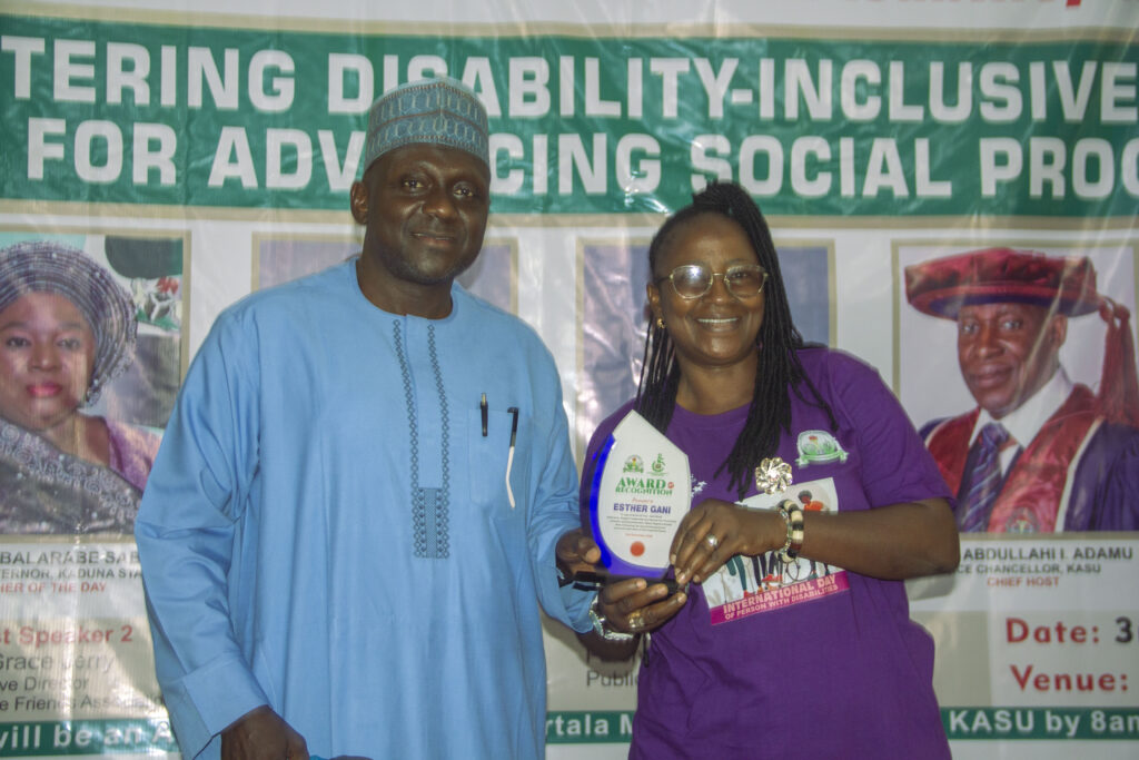 Speaking on “Breaking Barriers and Showcasing the Boundless Potential and Achievements of Persons with Disabilities,” Mrs. Grace Jerry shared her personal story. She narrated how an accident left her with a spinal cord injury, limiting her ability to walk or sit. She explained how even her home bathroom had to be modified before she could access it, an example of the structural barriers many face daily. Mrs. Jerry called for inclusiveness and accessibility across institutions and urged the management of KASU to make the institution a model for disability-friendly campuses. She emphasized that everyone is important and has a role to play in societal development.